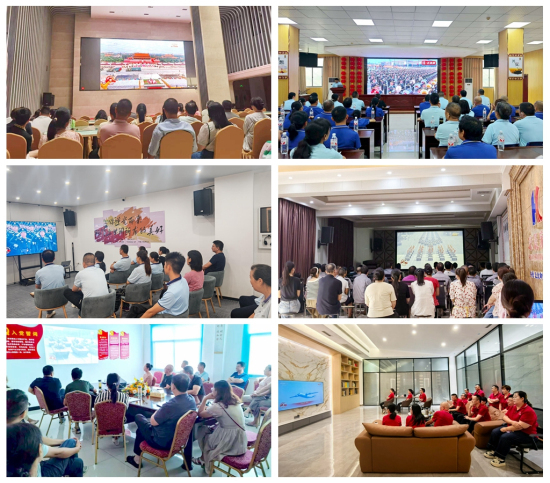 同時(shí),在集團(tuán)黨委號(hào)召下,三峽物流園、宏信地產(chǎn)、崟錦包裝、協(xié)豐印刷、宏晨包裝、天臺(tái)包裝、有為彩印等成員企業(yè)分別設(shè)立分會(huì)場(chǎng),組織員工集中觀看閱兵盛況。各分會(huì)場(chǎng)氣氛莊重?zé)崃遥瑔T工們?nèi)褙炞⒂^看直播,與主會(huì)場(chǎng)同步感受閱兵式的震撼場(chǎng)面,共同接受愛(ài)國(guó)主義教育的洗禮,進(jìn)一步激發(fā)了作為中國(guó)人的民族自豪感和為企業(yè)發(fā)展貢獻(xiàn)力量的使命感。